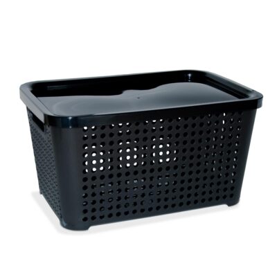 Este modelo de Cesto Orbital rectangular grande viene con tapa, permite resguardad su contenido. Con él podemos organizar placares, el cuarto de los niños, juguetes, libros, y mucho más. Los agarres de los laterales facilitan su manipulación.