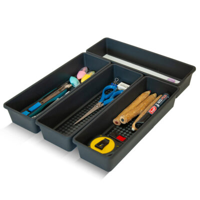 Set x 4 Organizadores Modulares rectangulares medianos (Art. 355). Medidas: 30 x 10 x 5 cm c/u.